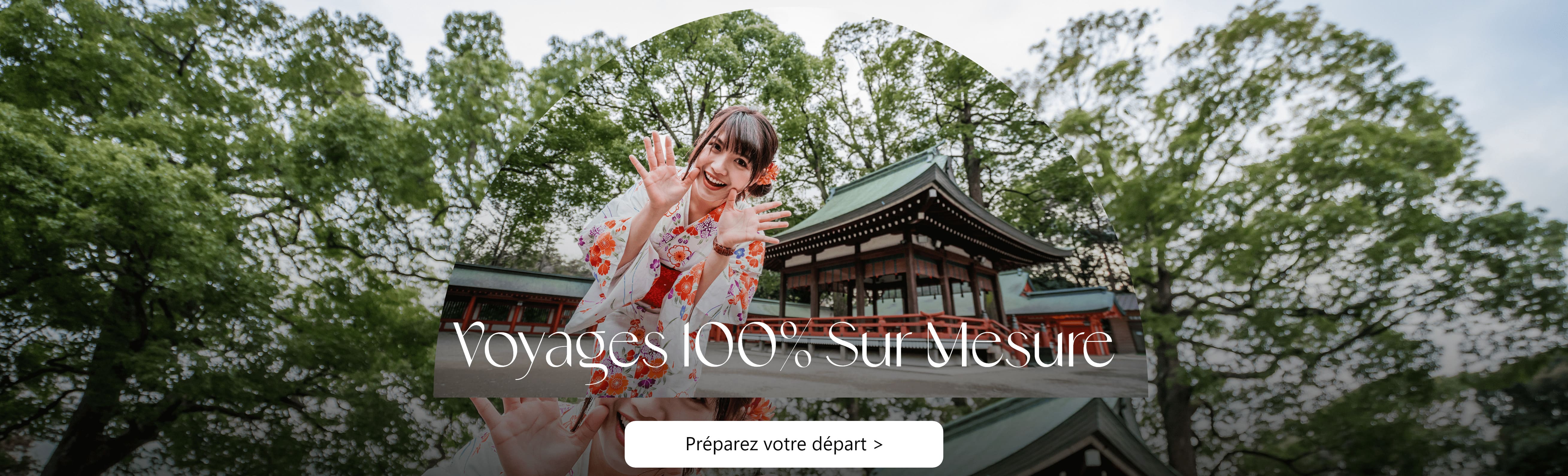 Optez pour nos voyages sur mesure au Japon et explorez un univers envoûtant. Découvrez Kyoto, berceau des temples ancestraux, éveillez vos sens. Flânez sous les cerisiers en fleurs, plongez dans l'authenticité. Vibrez à Tokyo, mégapole trépidante aux gratte-ciels futuristes. Goûtez à la gastronomie exquise, sushis artistiques à chaque bouchée. Admirez la sérénité du Mont Fuji, icône majestueuse du paysage nippon. Nos experts façonnent votre périple sur mesure.
