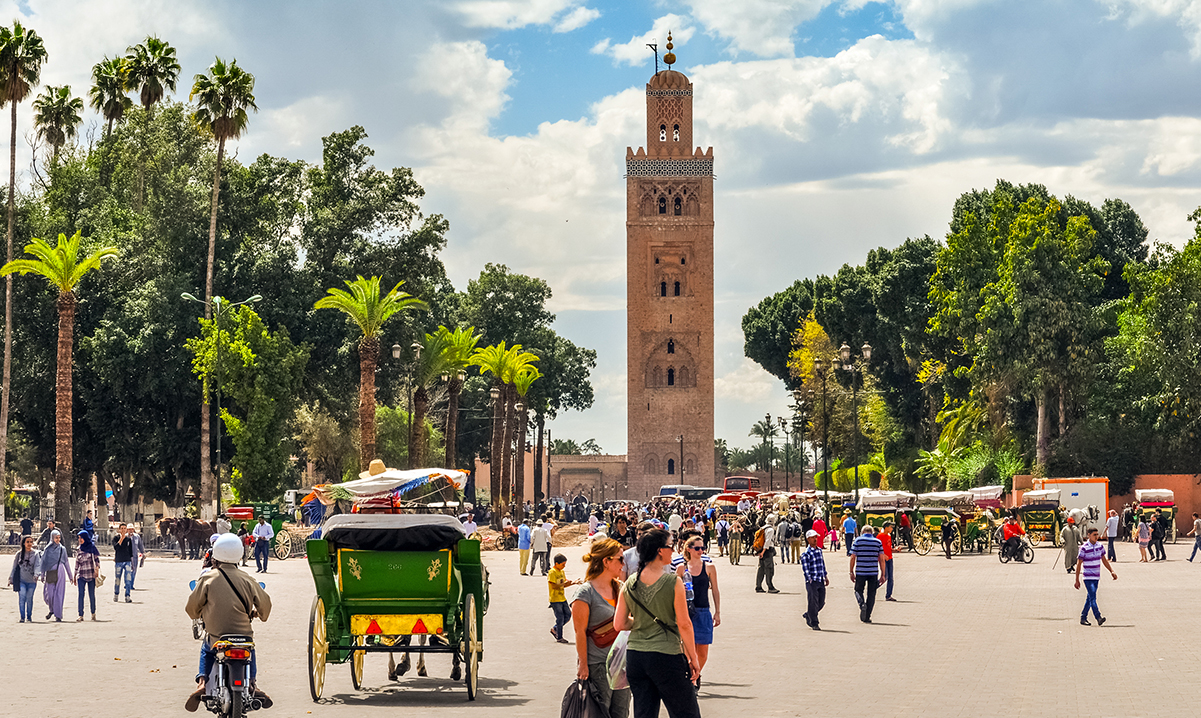 A berber breakfast at the hotel.A visit to Marrakesh city : Start your discovery experience by visiting the Koutoubia mosque, then continue to the Medersa Ben Youssef to admire the traditional Moroccan architecture and the famous mosaics.Your next stop is the Mellah, or old Jewish quarter, to know more about Morocco's little-known but iconic Jewish heritage.Your journey will continue until the one and only Djema El Fna square to discover a colorful atmosphere: street artists, fortune tellers, musicians, snake charmers, orange juice sellers, tattoo artists... Back to the Kasbah.Night at the hotel.