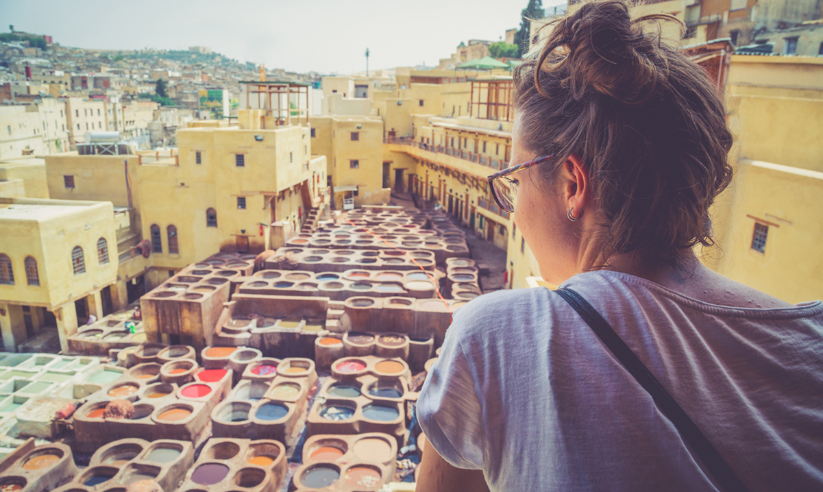 The whole day is devoted to the city-sightseeing of Fez, the spiritual capital of Morocco: the medieval Medina and the Bou Anania Medersa, the Nejjarine fountain, the Foundouq Nejjarine: Museum of woods, Moulay Idriss mausoleum, and the outside of Karaouine mosque. Optional (FB Basis): Moroccan lunch at a traditional restaurant in the Medina. Afternoon: visit of the esplanade of the Royal Palace with its sumptuous golden door and then sightseeing of Fez Jdid. Dinner and accommodation at the hotel.