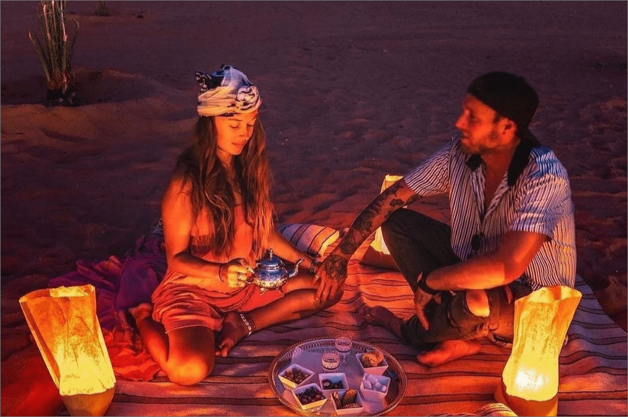 Dinner under a breathtaking starry night and an overnight stay in the middle of the sand dunes.