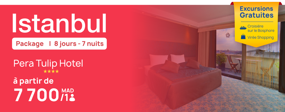 Nous avons une mission : aider les amoureux de voyage à découvrir de nouveaux horizons. C’est pourquoi nous vous proposons une formule vol + hôtel + Tansfert à Istanbul ultra pratique : regroupez votre hôtel, vos billets d’avion et transferts Aéroport > Hôtel > Aéroport dans un forfait sur mesure. Vous pouvez inclure des activités en extra à votre séjour.