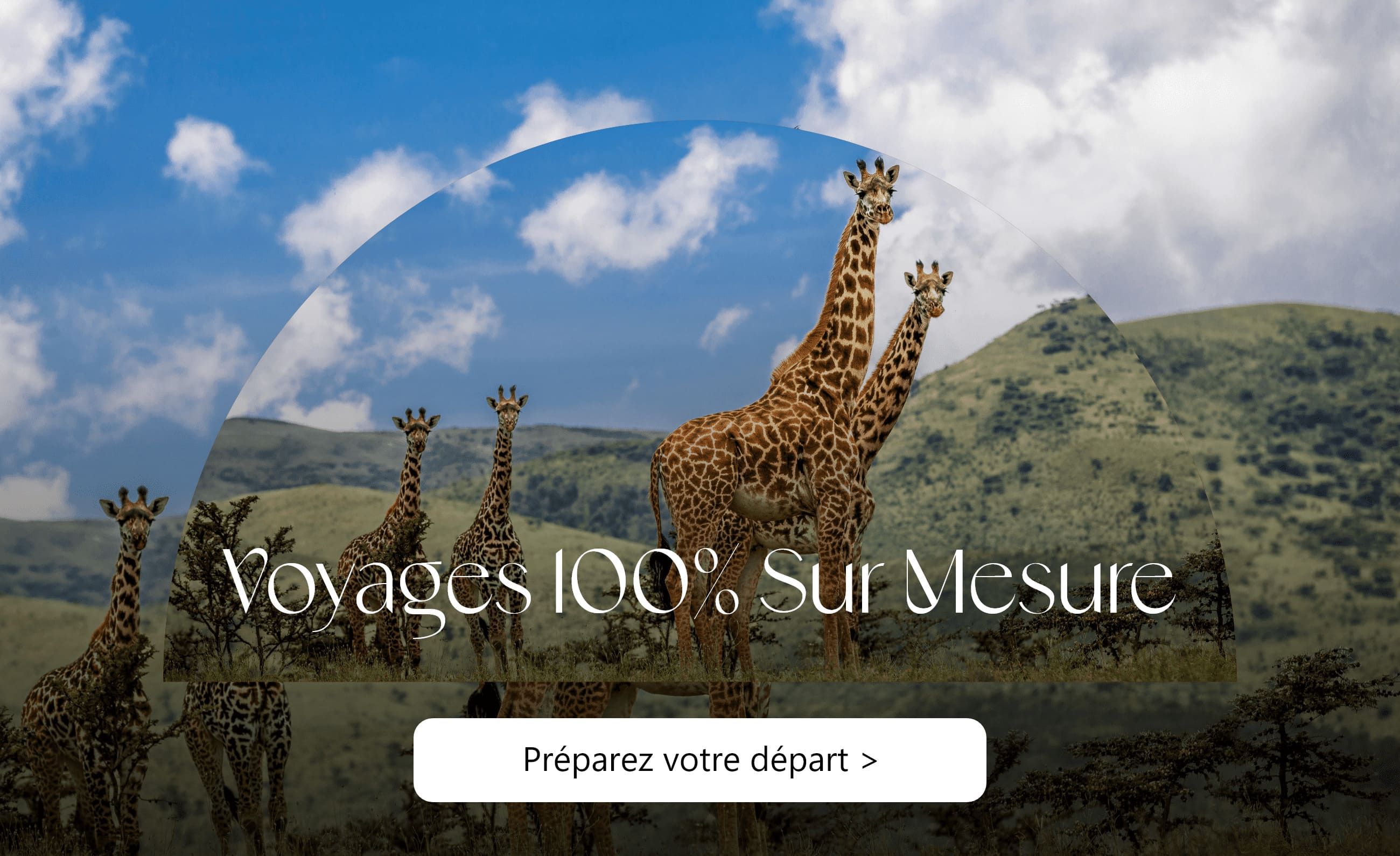 Plongez au cœur de l'Afrique avec un voyage sur mesure Tanzanie. Paysages époustouflants, faune sauvage et culture riche vous attendent. Découvrez le mont Kilimandjaro, ses sommets enneigés et ses sentiers secrets. Explorez ensuite les plaines du Serengeti, théâtre du plus grand spectacle animalier au monde. Chaque étape de votre séjour sera conçue selon vos désirs.